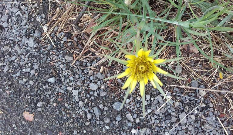Schlappe 15 km. Viel zu früh am Ziel: die Wildblume “Großer Bocksbart” schließt bereits mittags wieder ihre Blüten – davon ist noch rein gar nichts zu sehen.